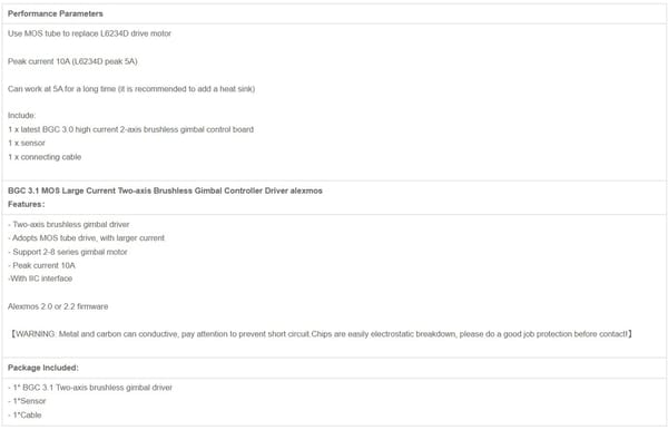 Product name: BGC 3.1 high current 2-axis brushless gimbal control board