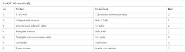 S1400-P33 is a self-developed TDD wireless transmission equipment. The product has the functions of real-time interference detection, adaptive frequency selection, adaptive stream, and automatic retransmission, automatic power control, which greatly improves the ability of anti-multipath and anti-interference. It has the characteristics of high reliability, good stability, and low delay.