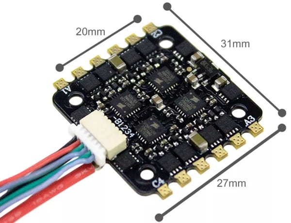 4. Four-in-one ESC size: 27*31mm (including the maximum size of the pad and protruding points)
