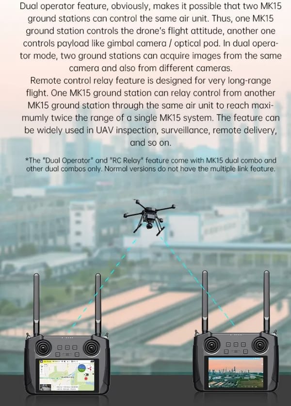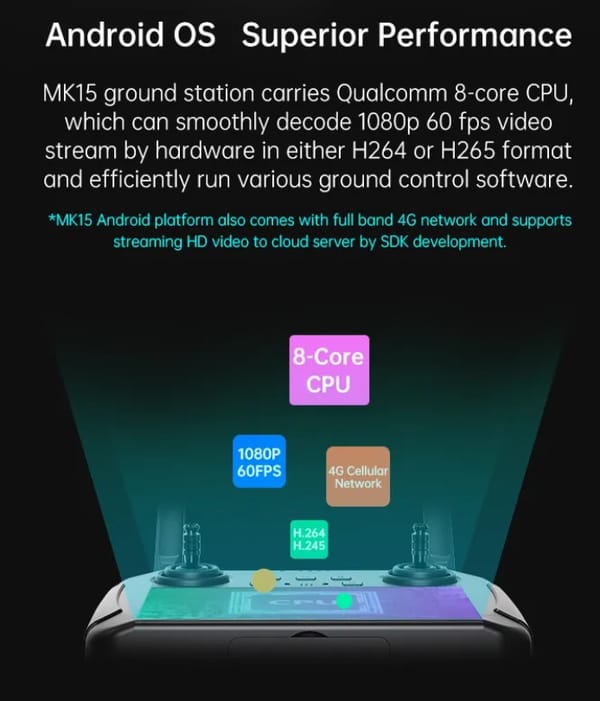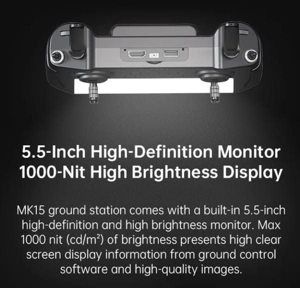 1080p Dual HD Digital Image Transmission | 15KM Range | 180ms Low Latency | 1080p@60fps H.264/H.265 Decoding | Long Range Antenna | 5.5" 1000cd/m2 1080p HD Monitor | 3.5H PD Fast Charging | 12H Battery Life | Compatible with PIX and QGC