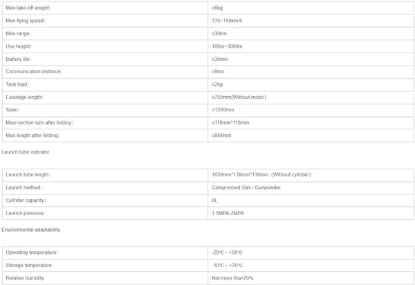 1200-The drone has the following functions: The flight route is preset through the ground station. After the aircraft takes off, it will be guided by GPS/GLONASS/Beidou/Galileo. A) Manual control function In the manual control mode, the Loitering Munition flies in response to the remote control commands of the ground operator. B) Automatic route function Loitering Munition will fly according to the predetermined route and end at the last coordinate point C) Install photoelectric guidance, which can be guided at the end.3 D) Launch and take off in the folded wing tube, multiple loitering bombs can be launched at one time, and multiple loitering bombs can perform the same flight mission or different flight missions; E) The take-off method is high-pressure gas launch take-off, or propellant take-off;