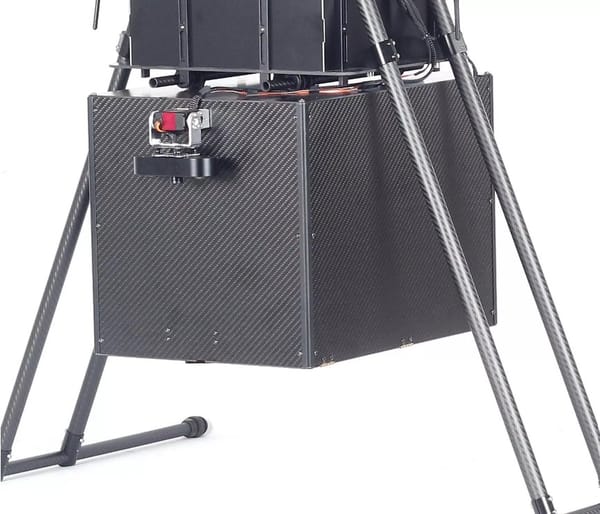The emergency material transport box is hung under the SPEED60 emergency flight platform, which is designed with carbon fiber material.